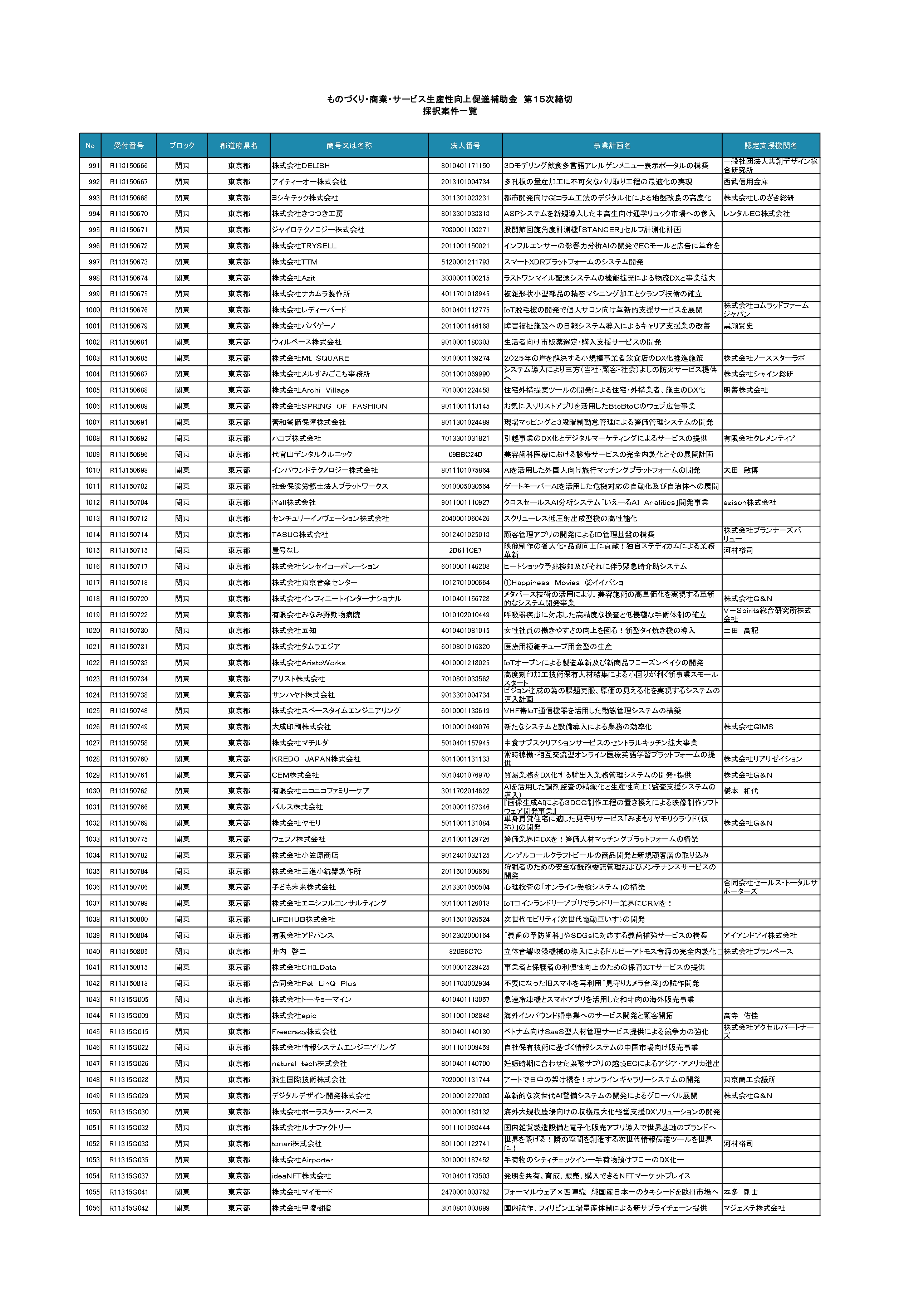 ものづくり・商業・サービス生産性向上促進補助金(15次)採択案件一覧(抜粋)(ダウンロード)