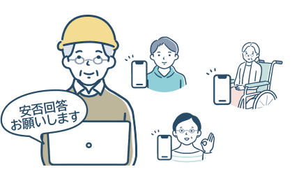 災害時に、スマートフォンから安否を簡単に伝えられる機能です。位置情報も共有できるため、居場所を伝えやすく、必要な助け合いにつながります。