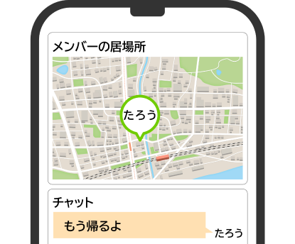 家族間で情報共有ができます。居場所も共有できるので、家族で出かけるときや、子供の見守りにも活用可能です。