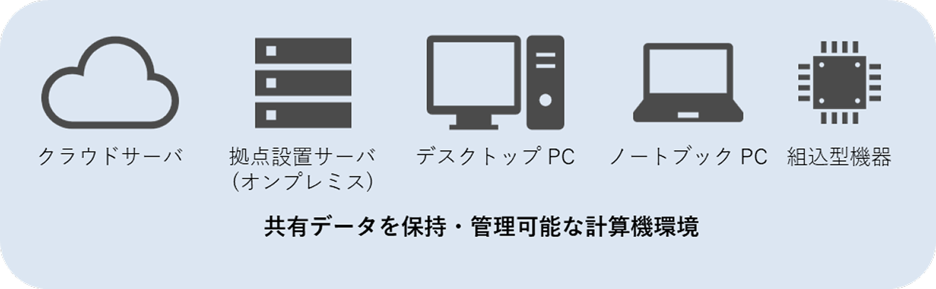 拠点設置サーバは、メモリ 8 GB 以上、ストレージ 200 GB以上で動作します。また、操作端末は Chrome ブラウザ(Windows、Linux、macOS) か、モバイルアプリ (iOS 14以降または Android OS 11 以降) を用いて動作確認をしています。