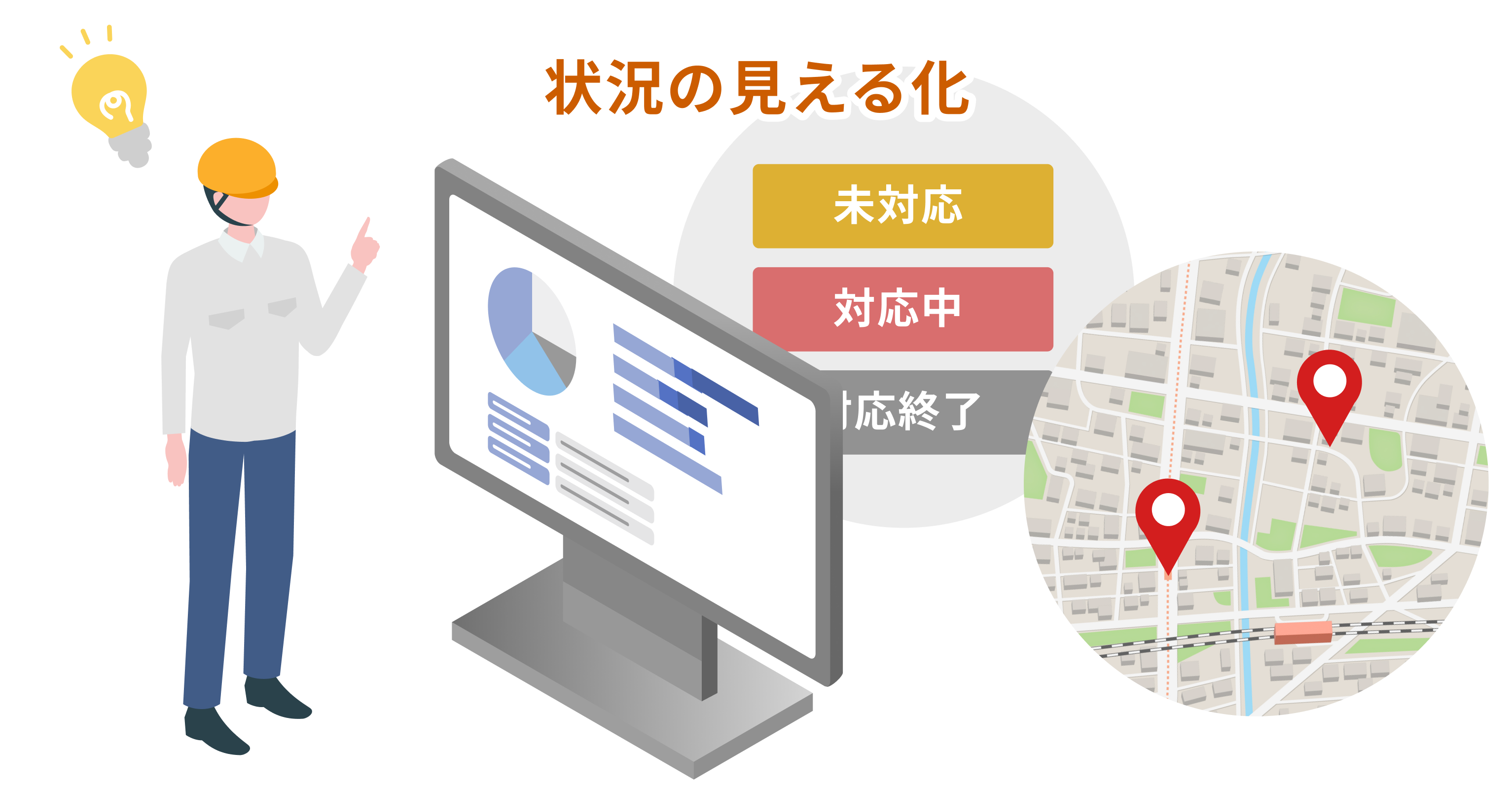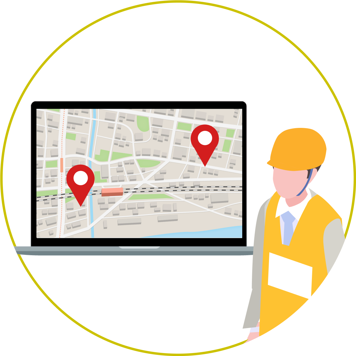対応すべき事案やその履歴を時系列順に管理したり、 地図上に情報を重ねて全体像を把握。 迅速かつ的確な意思決定へ。