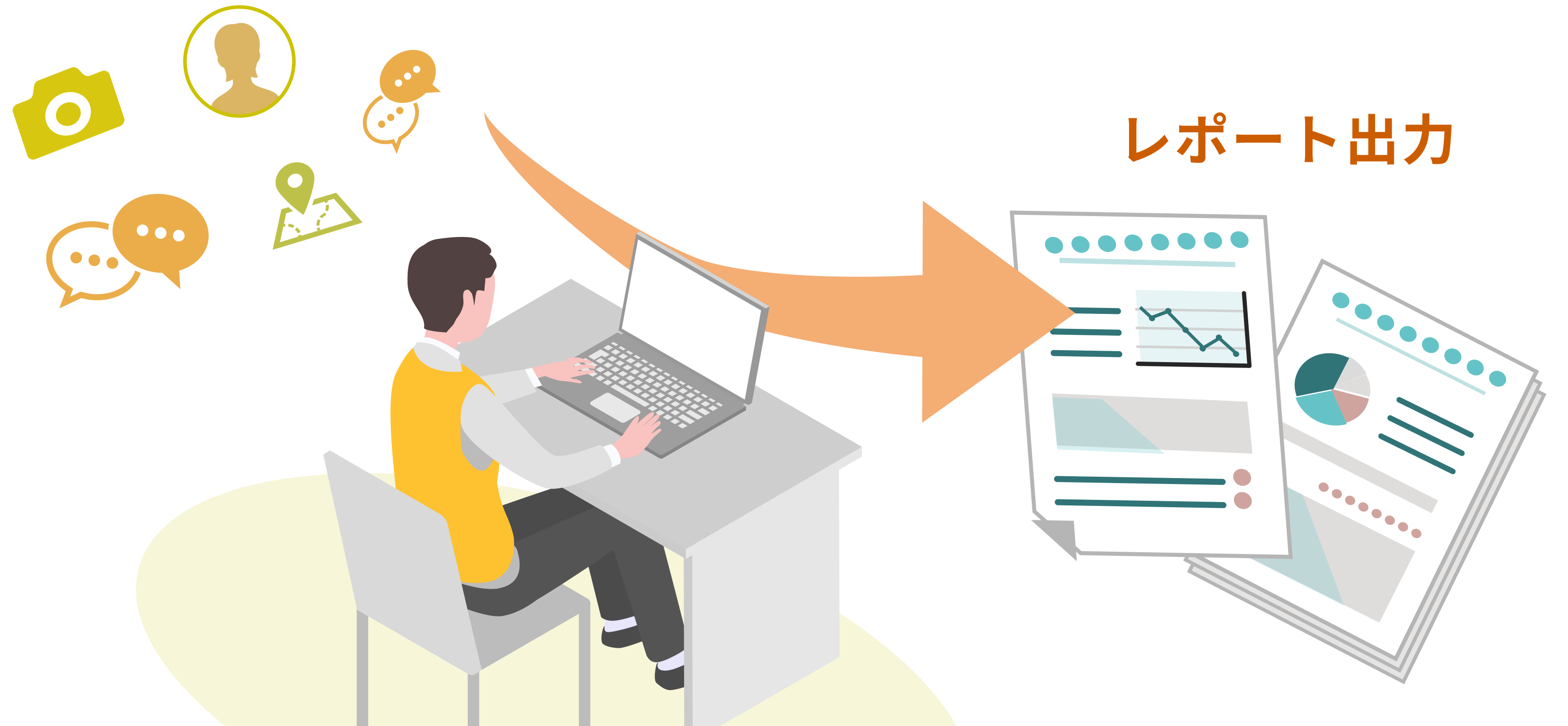 対応記録をもとに報告書を自動で作成。 関係機関への報告も正確かつ速やかに行うことができます。